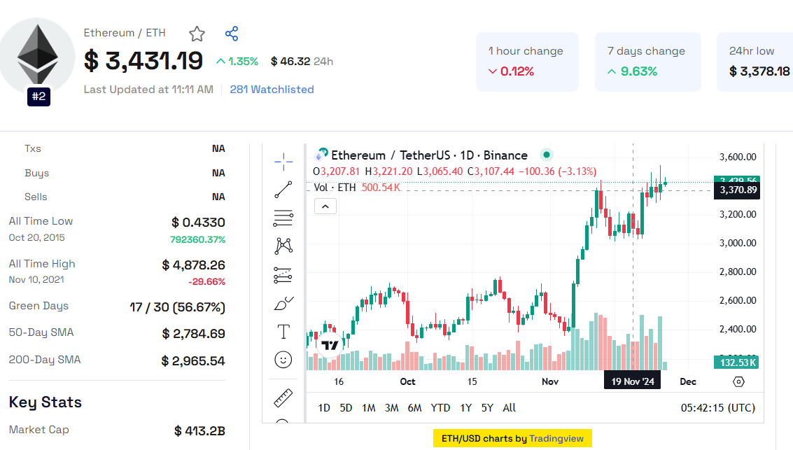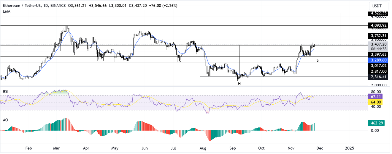 Ethereum’s ability to maintain its position above $3,400 is critical for achieving its bullish targets. Positive momentum indicators and increased whale activity support the case for an extended rally, with the potential for a 30% surge if ETH overcomes resistance levels. Keep an eye on $3,732 and $4,093 as key levels in Ethereum’s path to new highs.