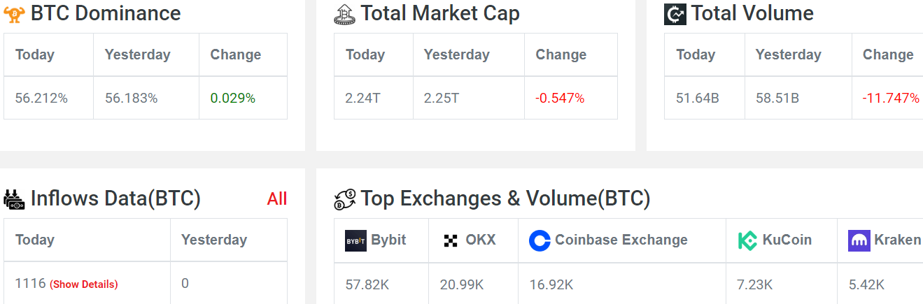 Bitcoin Dominance: 56.212% (up from 56.183% yesterday)