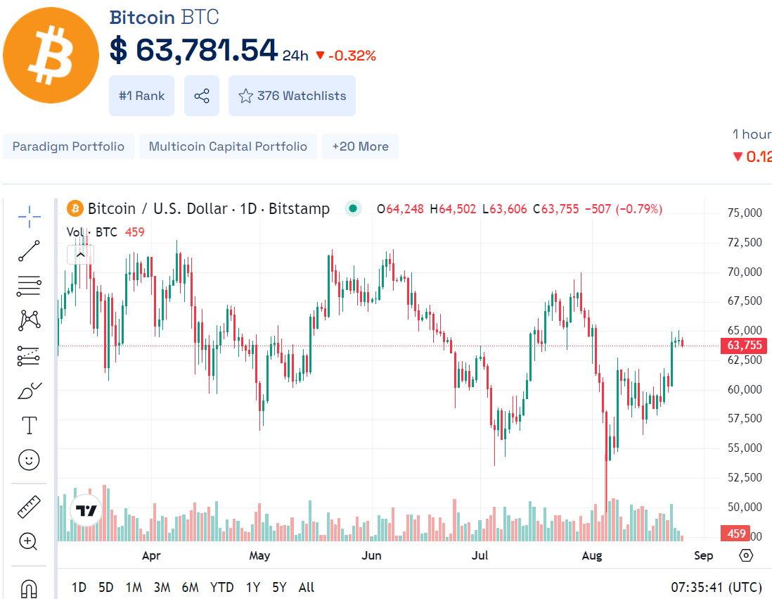 Bitcoin Price: Currently around $63,781, with a 0.32% decrease in the last 24 hours. Despite reduced trading volume, experts predict potential highs between $68,000 and $71,000.